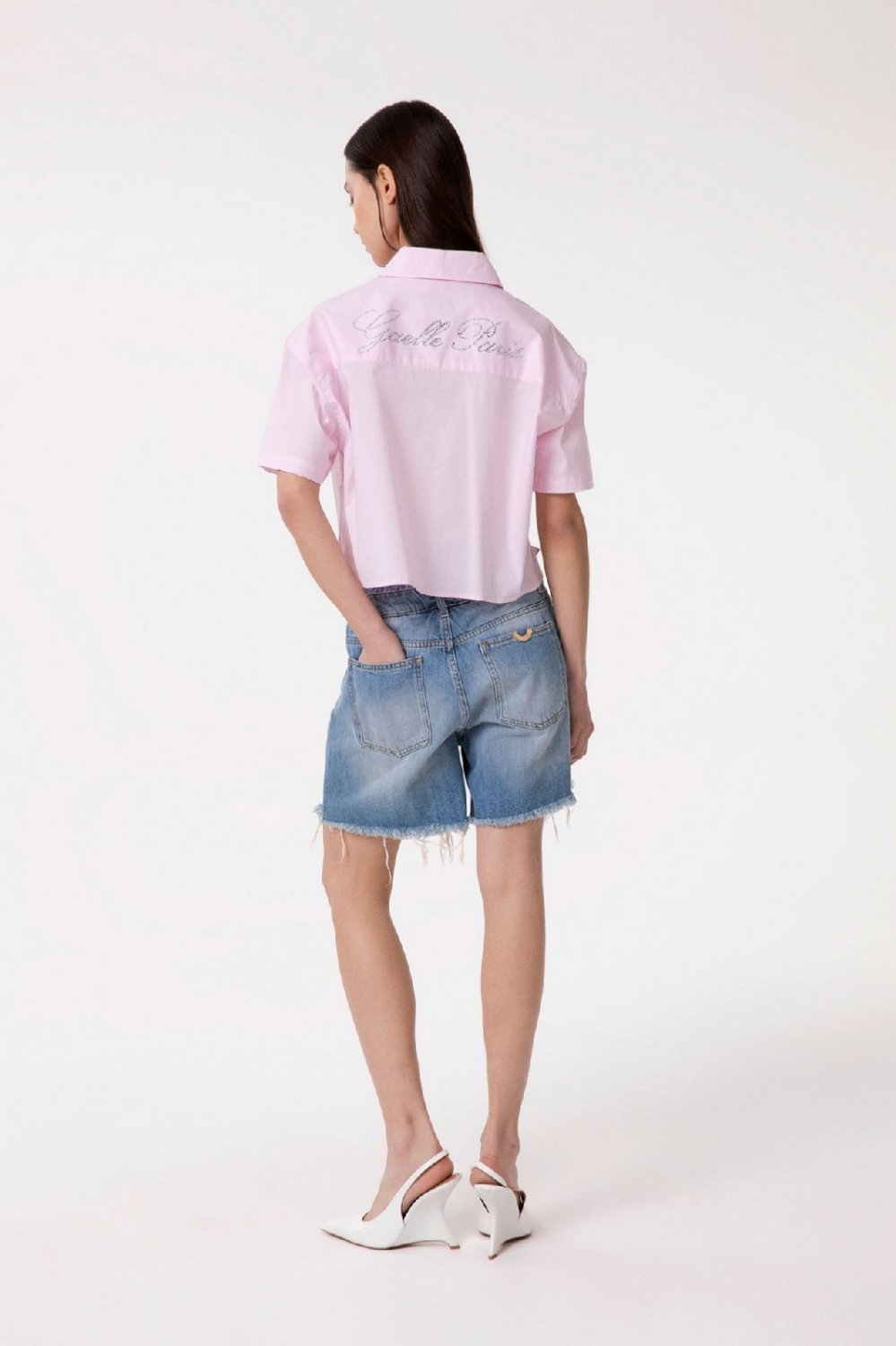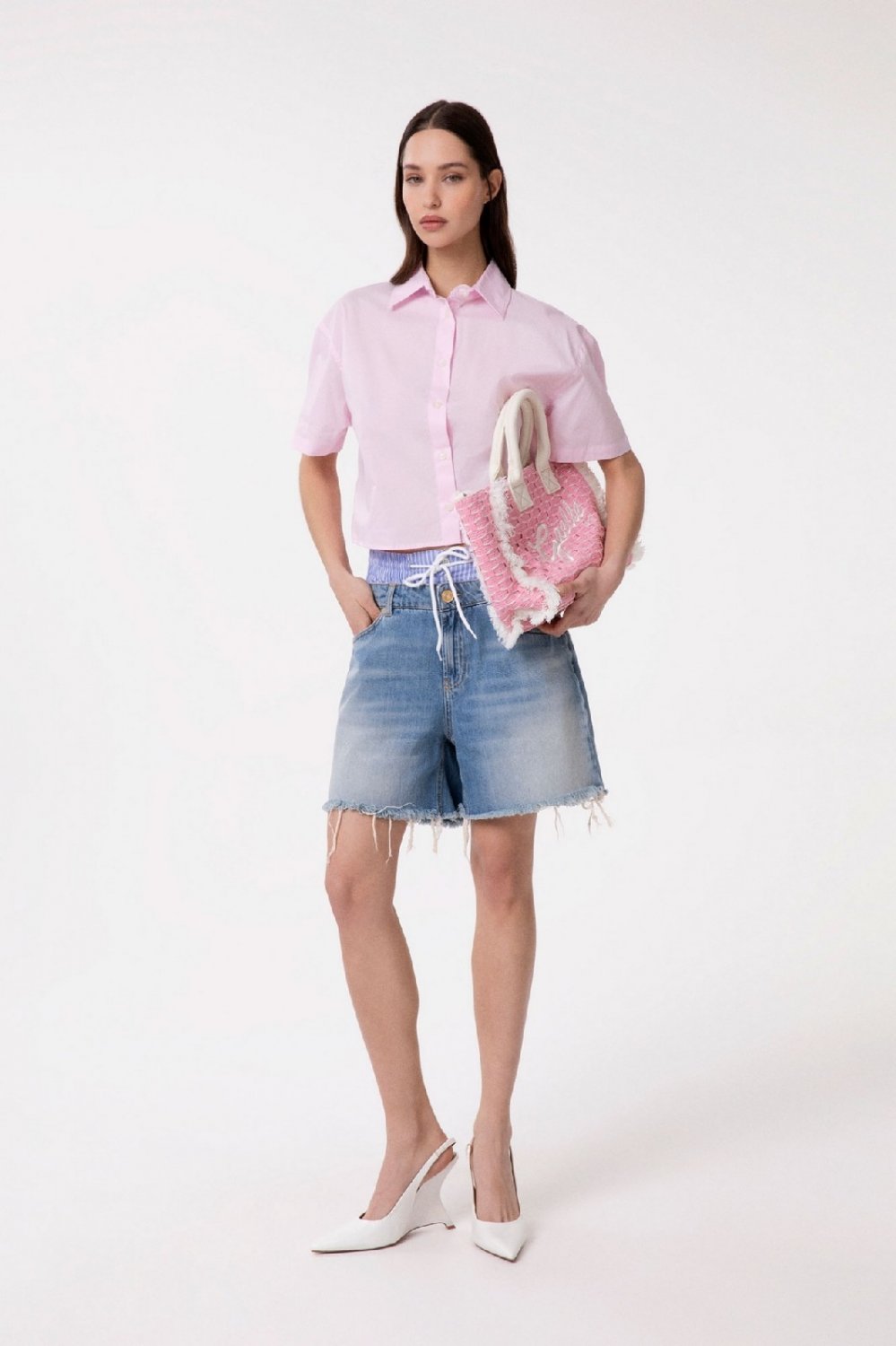 Product: SHORT IN DENIM CON DOPPIA VITA IN POPELINE RIGATO DONNA GAELLE PARIS GAABW09515